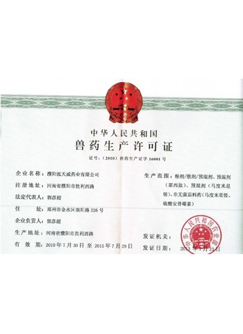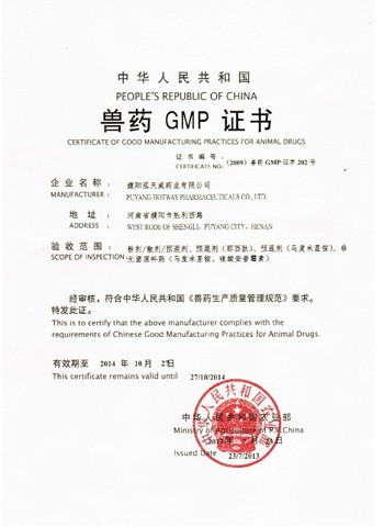 濮陽泓天威藥業(yè)有限公司成立于1997年9月,注冊資金5063萬元,占地面積44,666平方米。公司于1998年通過農(nóng)業(yè)部GMP原料車間、預(yù)混劑車間驗收,是國內(nèi)首家通過農(nóng)業(yè)部GMP驗收的獸藥原料藥生產(chǎn)企業(yè)。